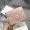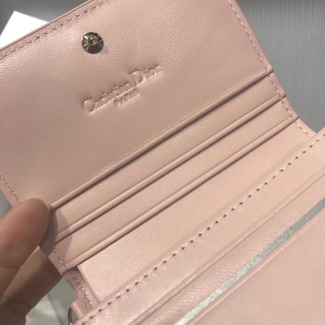 Portefeuille Dior Mini Lady Dior en cuir d'agneau rose