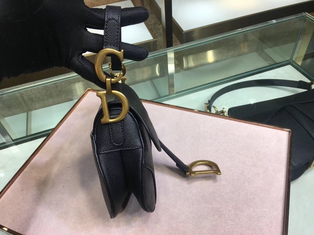 Dior Mini Saddle Bag In Black Grained Calfskin
