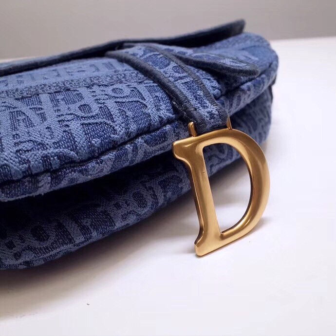 Dior Saddle Bag In Denim Blue Dior Oblique Canvas
