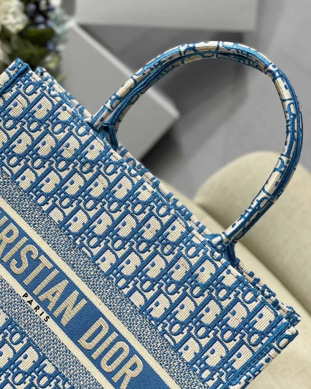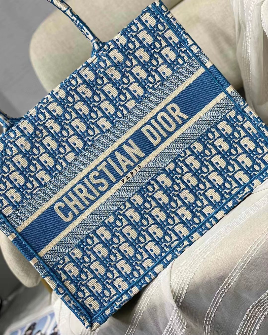 Soyez le premier à commenter "Dior Small Book Tote In Cornflower Blue Dior Oblique Embroidery"