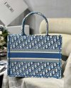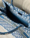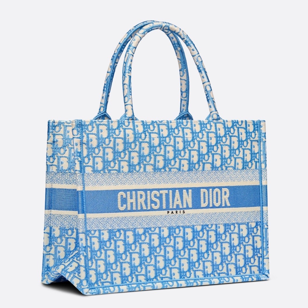Dior Small Book Tote In Cornflower Blue Dior Oblique Embroidery