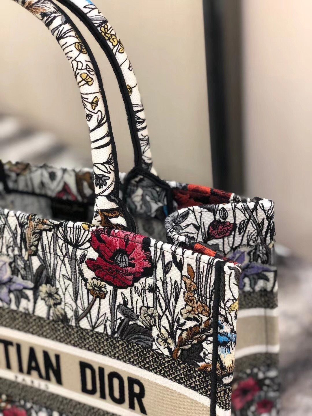 Dior Small Book Tote In Multicolor Mille Fleurs Embroidery