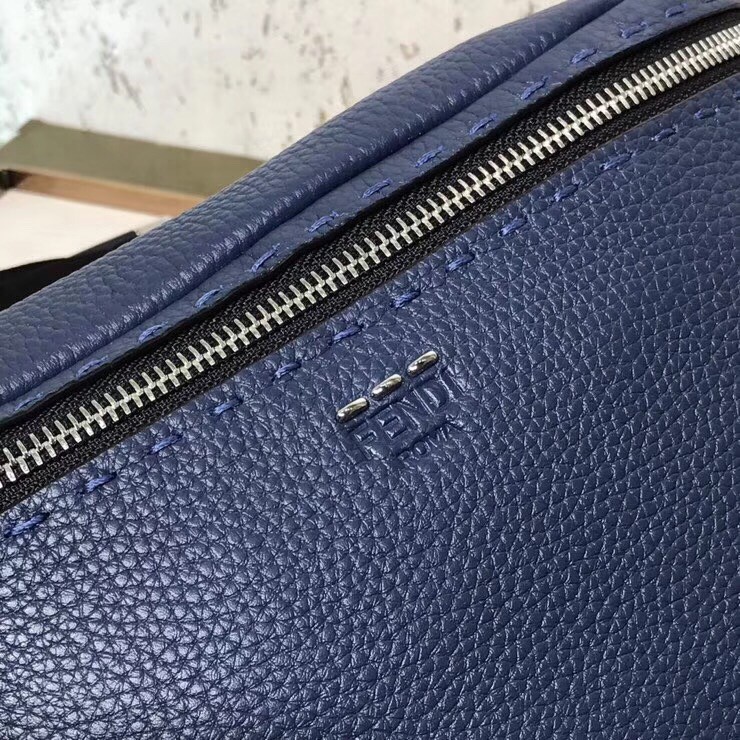 This Fendi Belt bag is made of blue Romano leather. Finished with ??Metal Stitch?? hand-sewn stitching, the bag attaches to the waist with the buckle belt strap or functions.