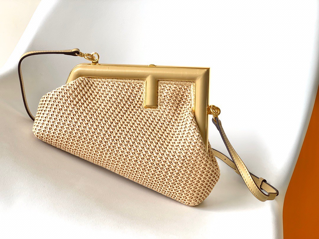 Soyez le premier à commenter "Fendi First Small Bag In Beige Raffia Macrame"