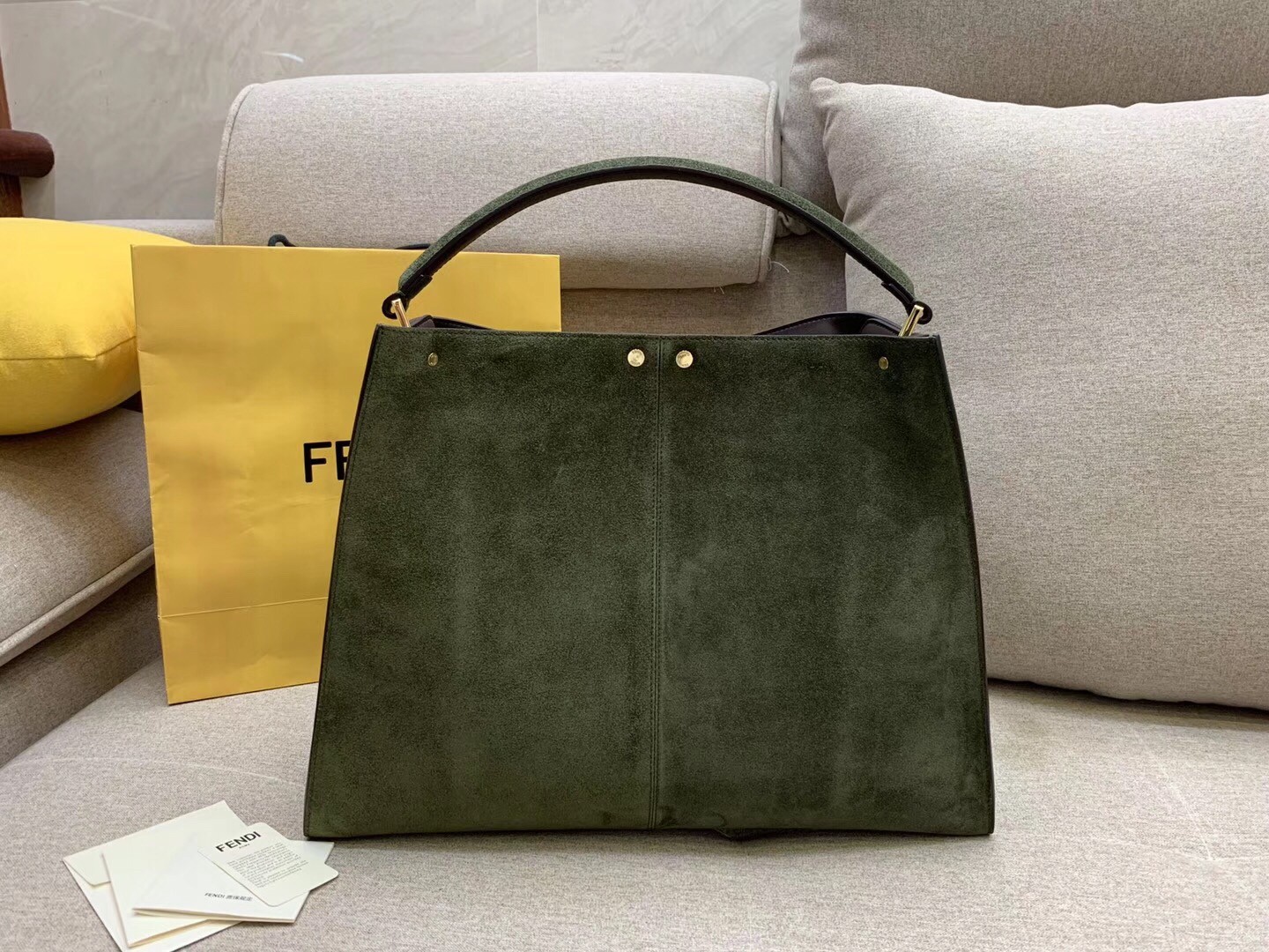 Soyez le premier à commenter "Fendi Green Peekaboo X Lite Large Suede Bag"