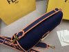 Fendi Large Baguette Bag In Blue Denim With Orange Trim