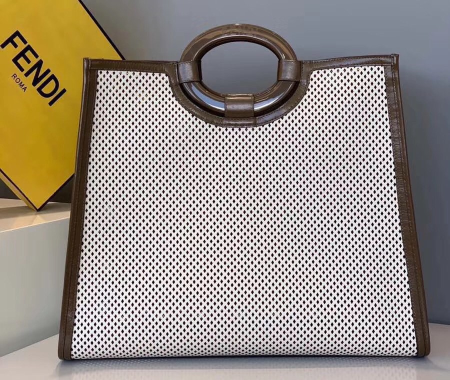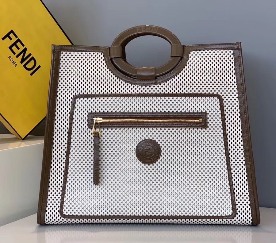 Fendi Large Runaway Shopper Bag In White Perforated Calfskin