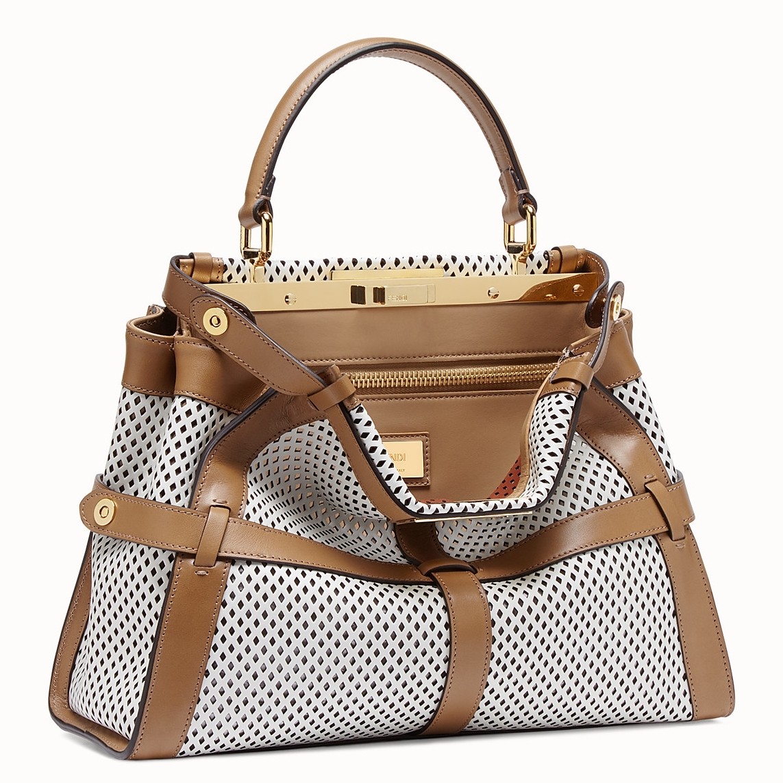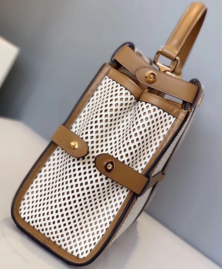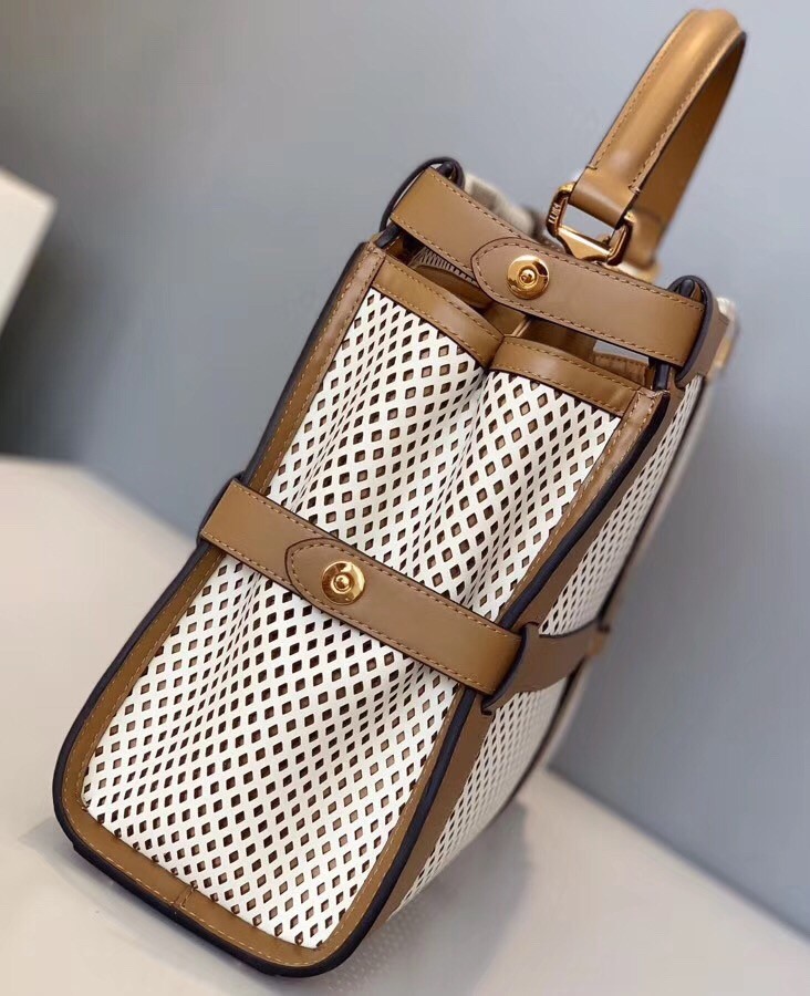Fendi Peekaboo Medium Bag In White Perforated Calf Leather