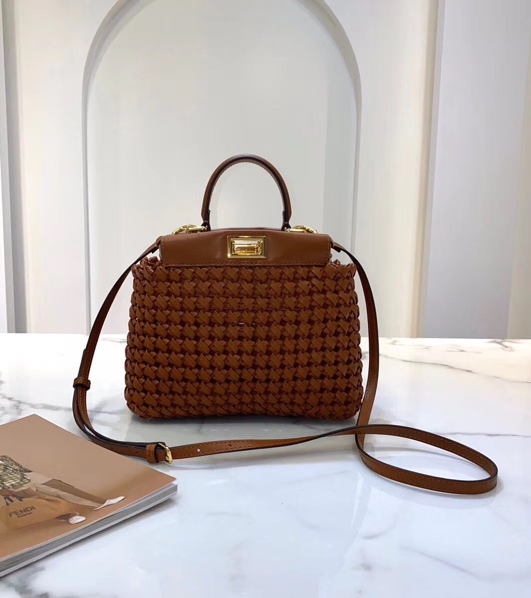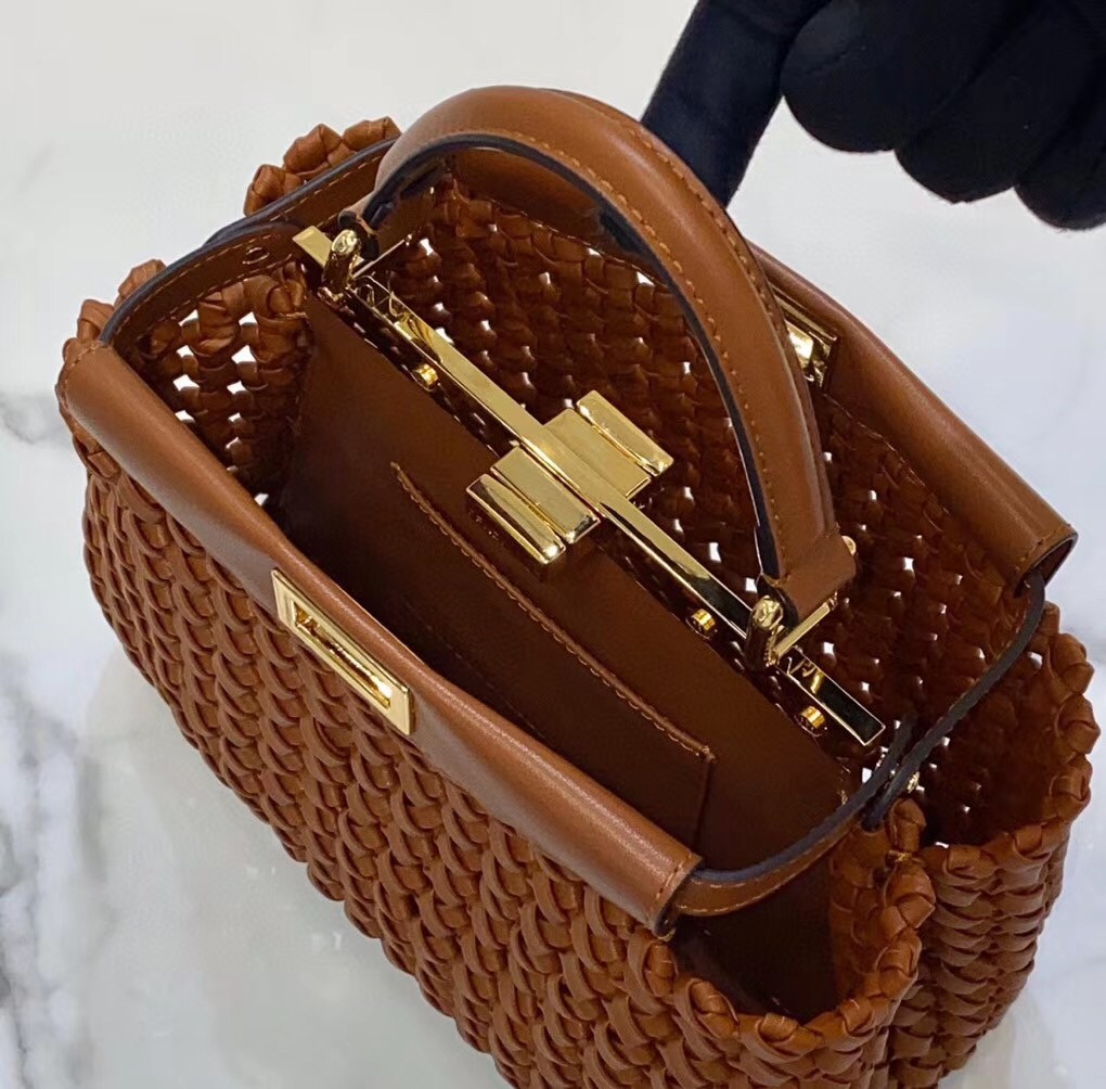 Soyez le premier à commenter "Fendi Peekaboo Mini Bag In Brown Interlace Leather"