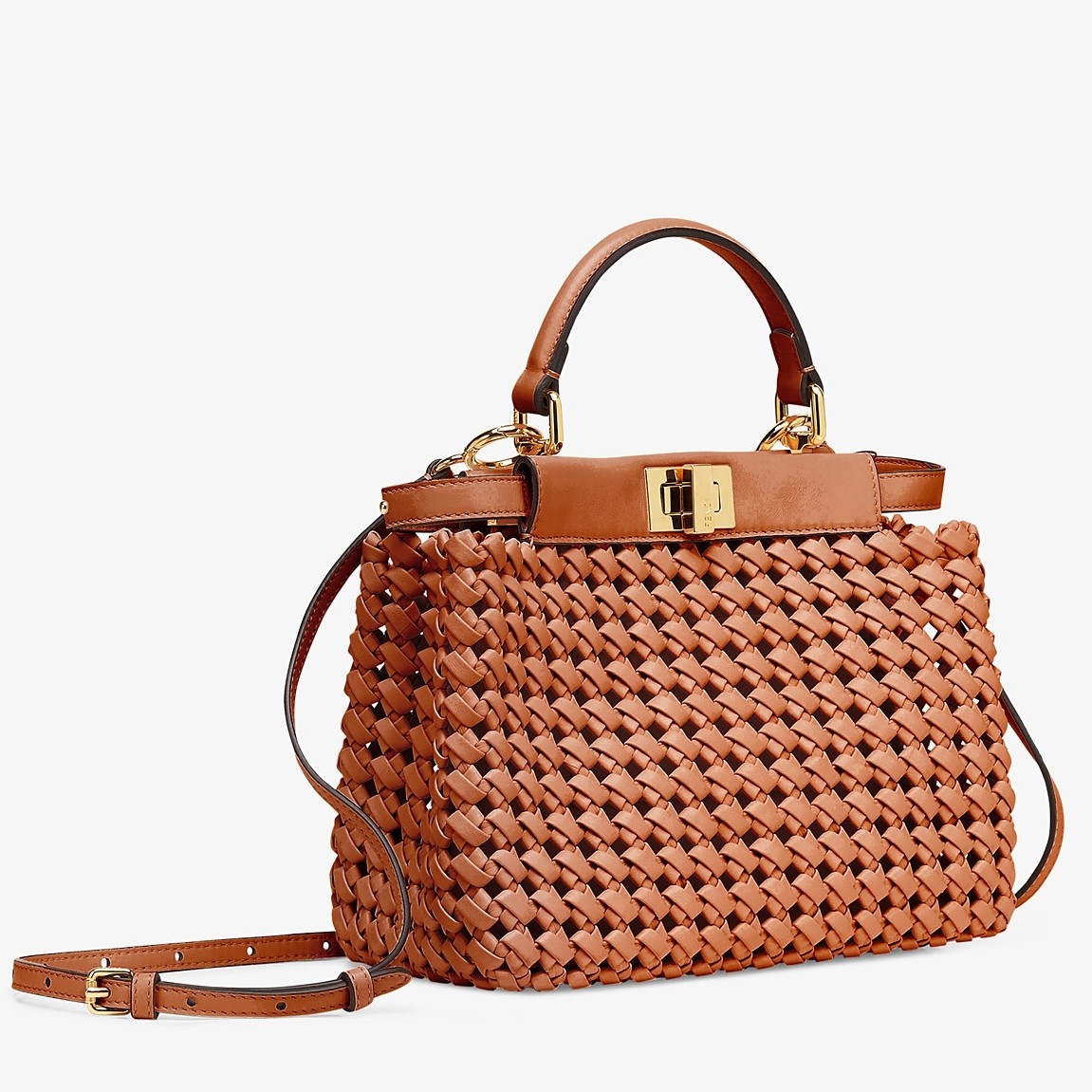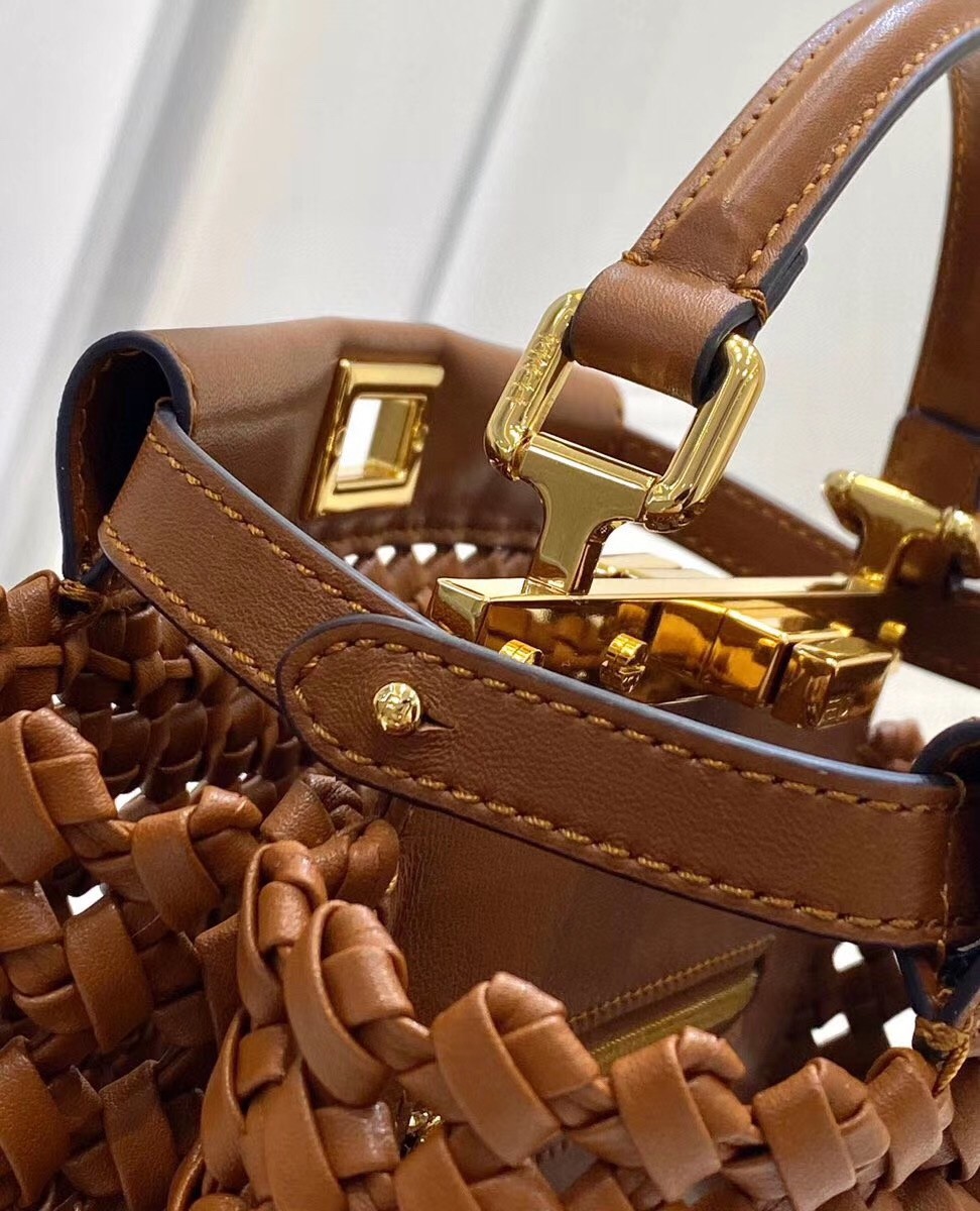 Mini sac Fendi Peekaboo en cuir marron entrelacé