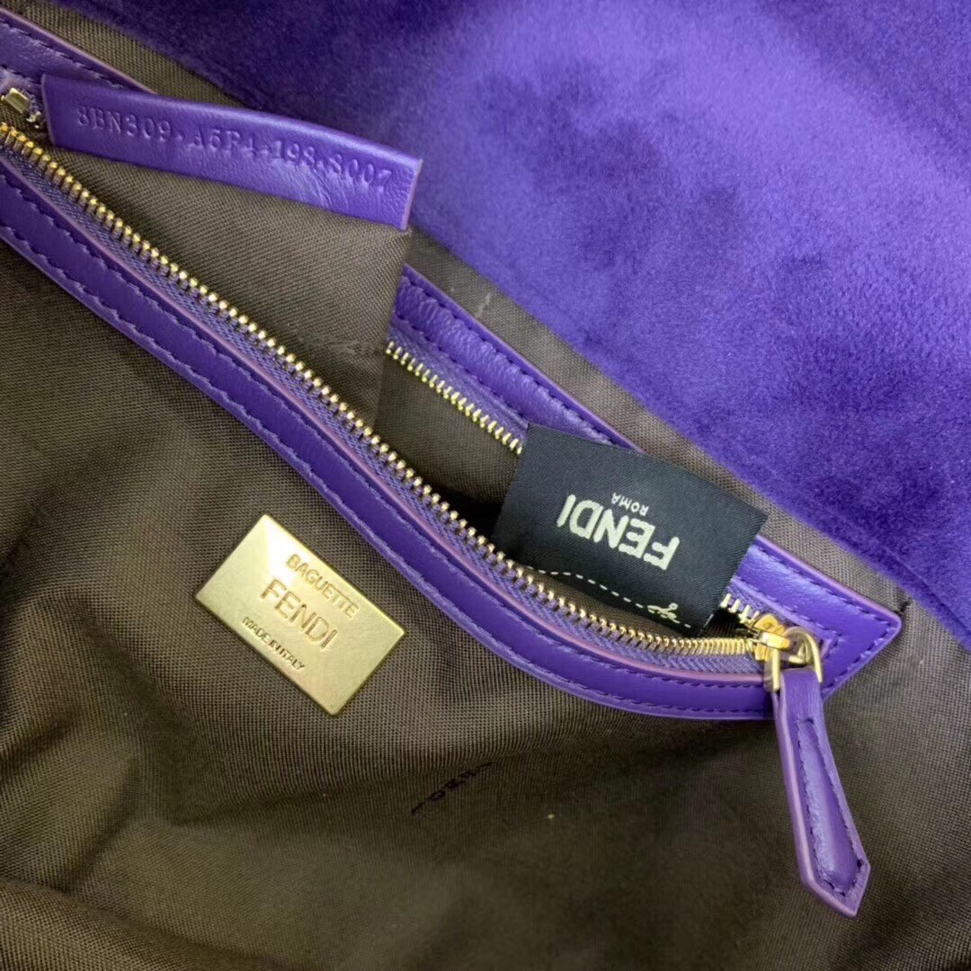 Fendi Purple Velvet FF Motif Medium Baguette Bag