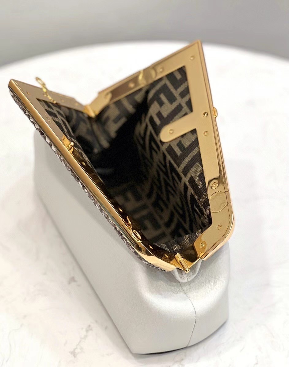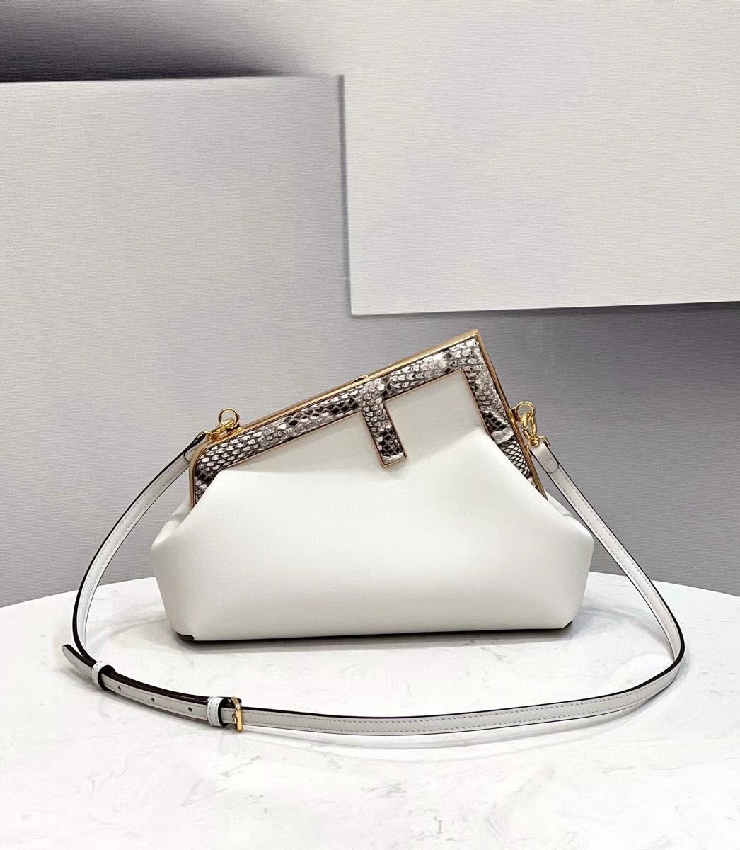 Fendi Small First Bag In White Leather with Python F