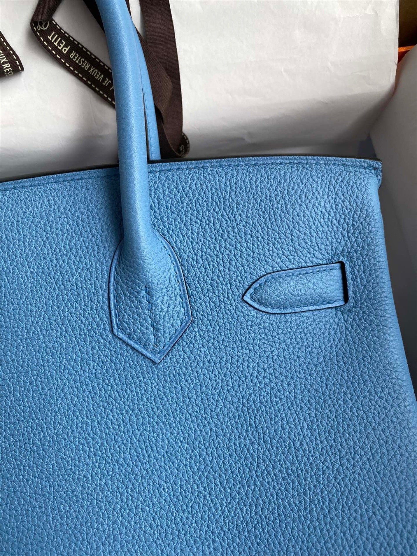 Soyez le premier à commenter "Hermes Birkin 30 Retourne Handmade Bag In Blue Paradise Clemence Leather"