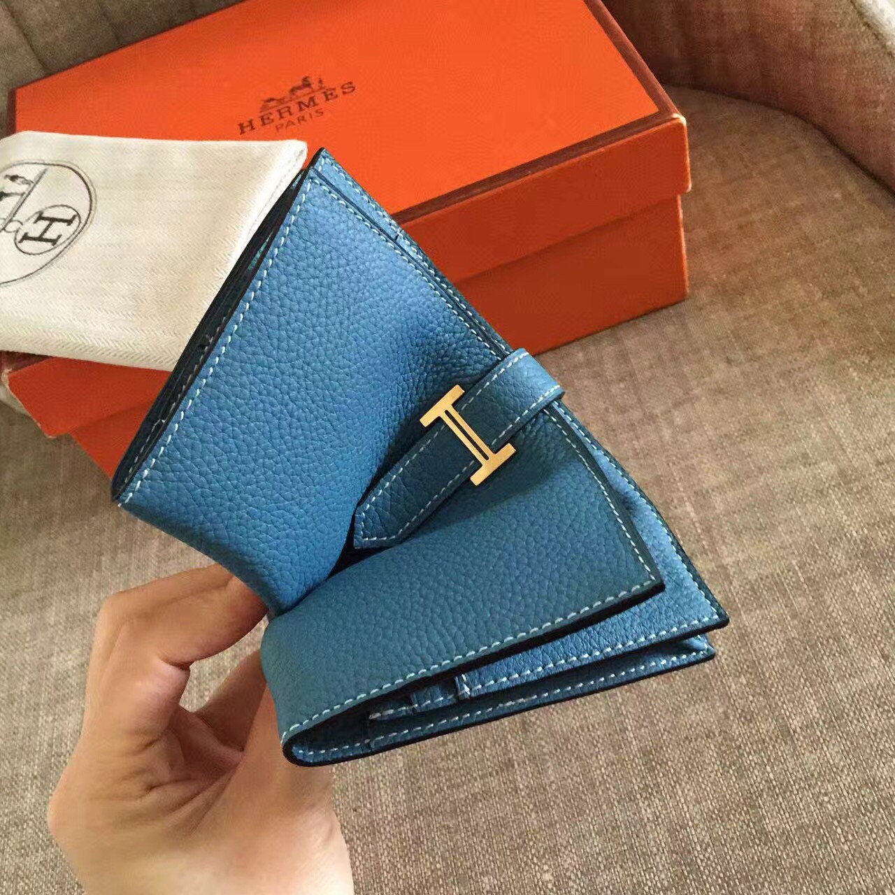Soyez le premier à commenter "Hermes Blue Jean Clemence Bearn Gusset Wallet"
