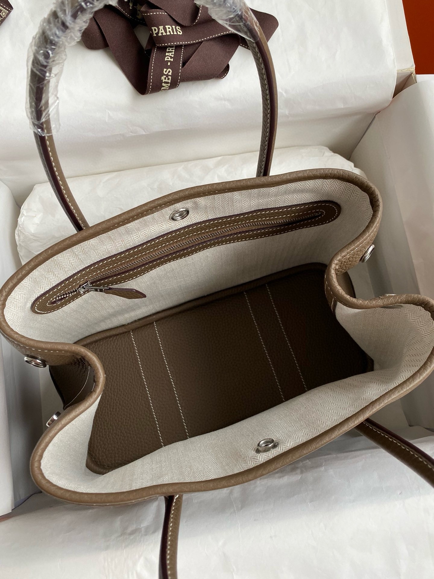 Hermes Garden Party 30 Sac à main en cuir taupe Clémence