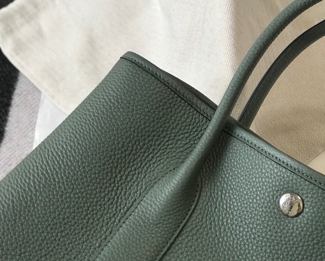 Hermes Garden Party 36 Sac en cuir Vert Amanda Clemence