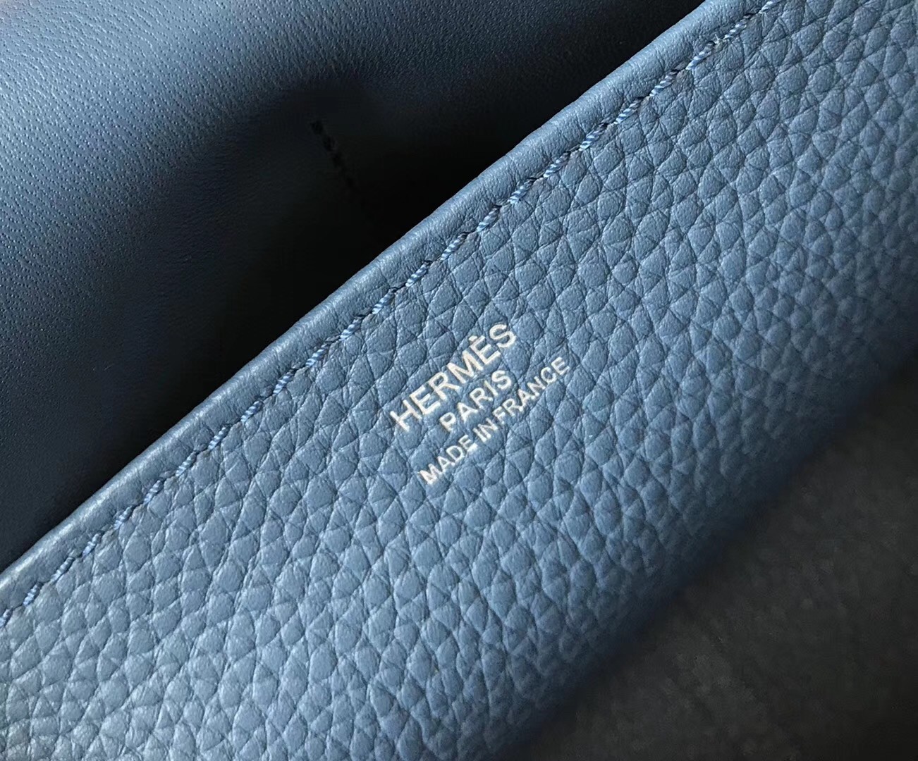Hermes Halzan Sac 31cm En Cuir Bleu Agate Clémence