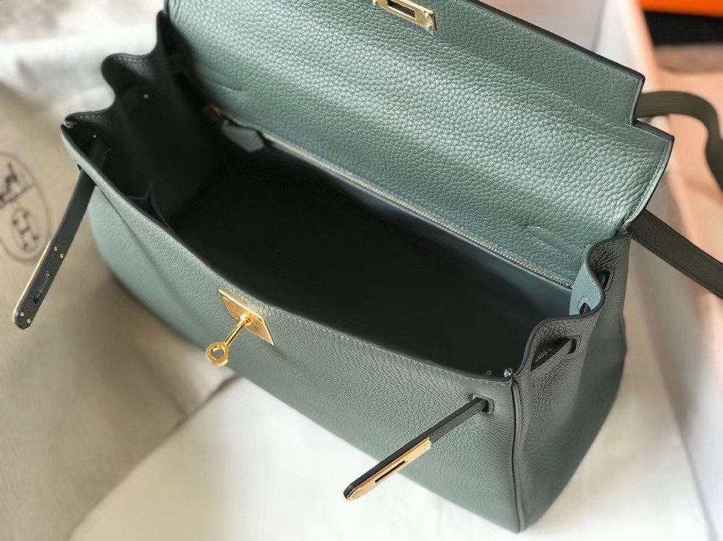 Hermes Kelly 32cm Retourne Bag In Vert Amande Clemence Leather