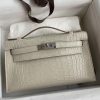 Hermes Kelly Pochette Sac à main en cuir d'alligator mat Beton
