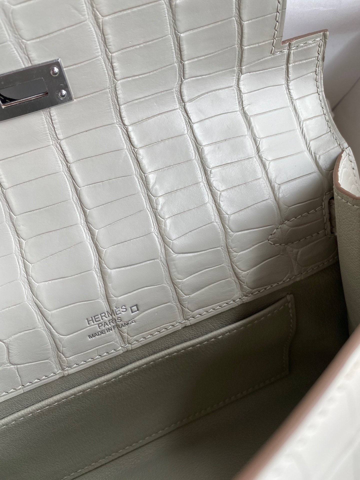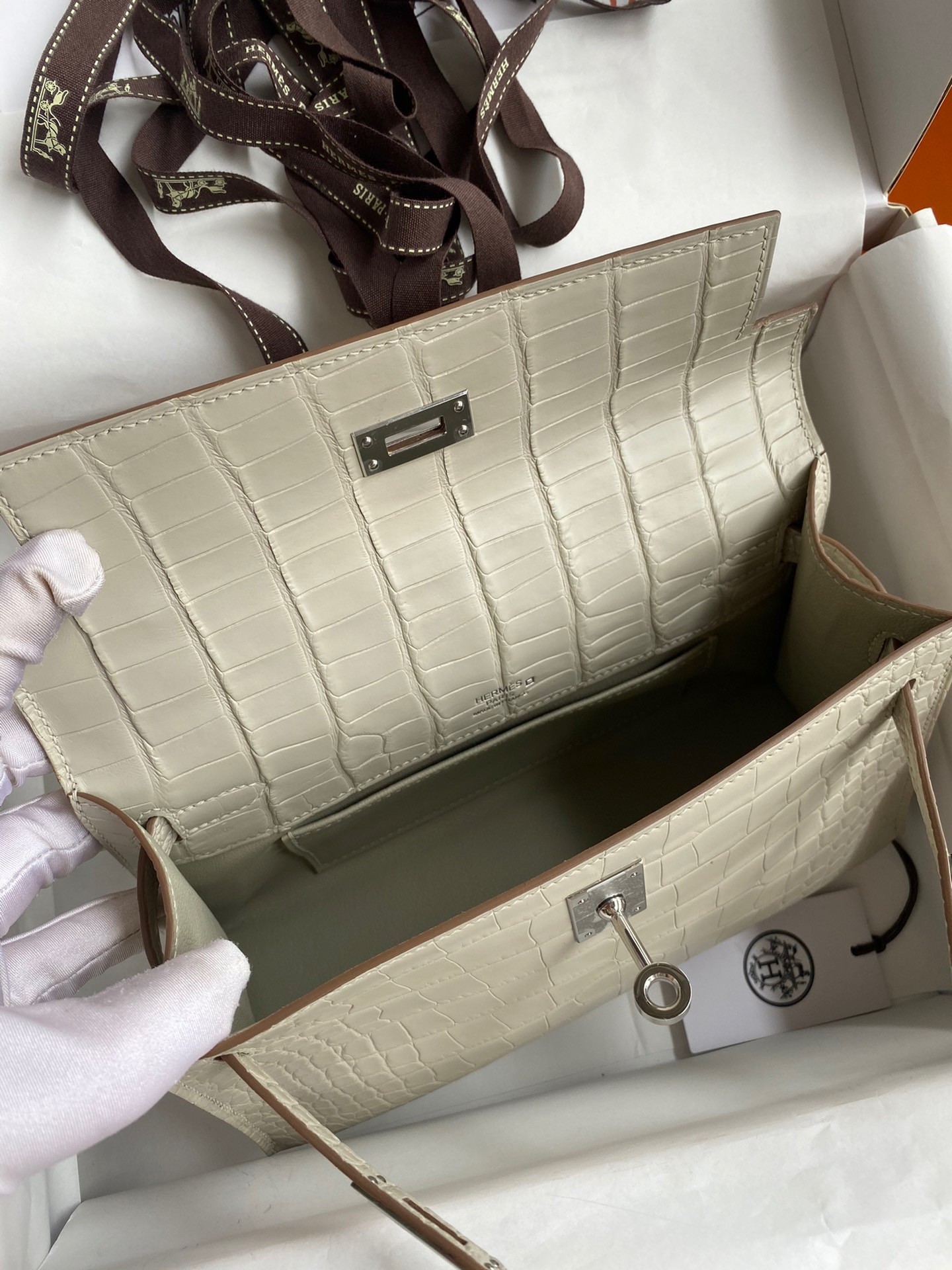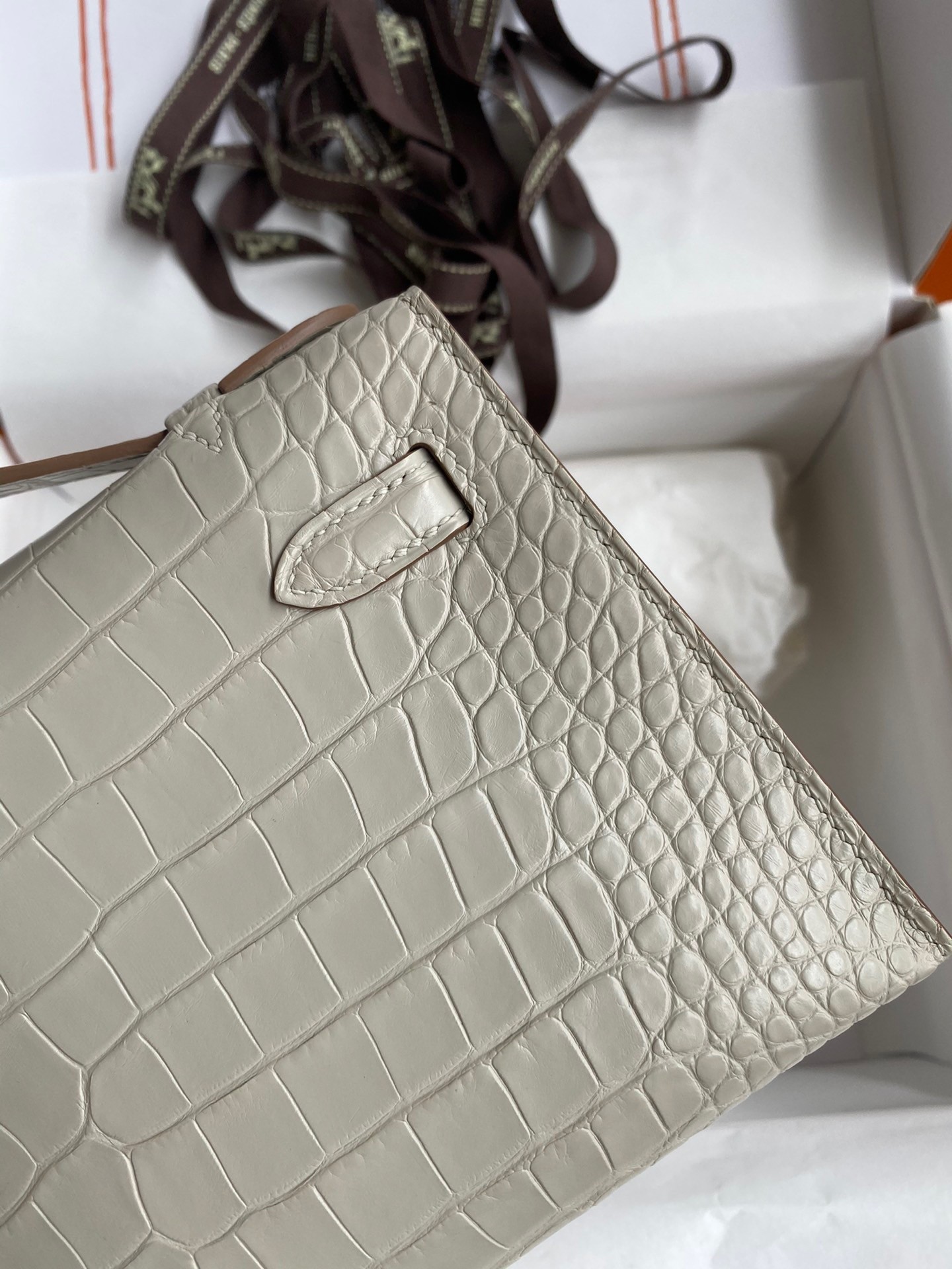 Soyez le premier à commenter "Hermes Kelly Pochette Handmade Bag In Beton Matte Alligator Leather"