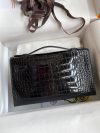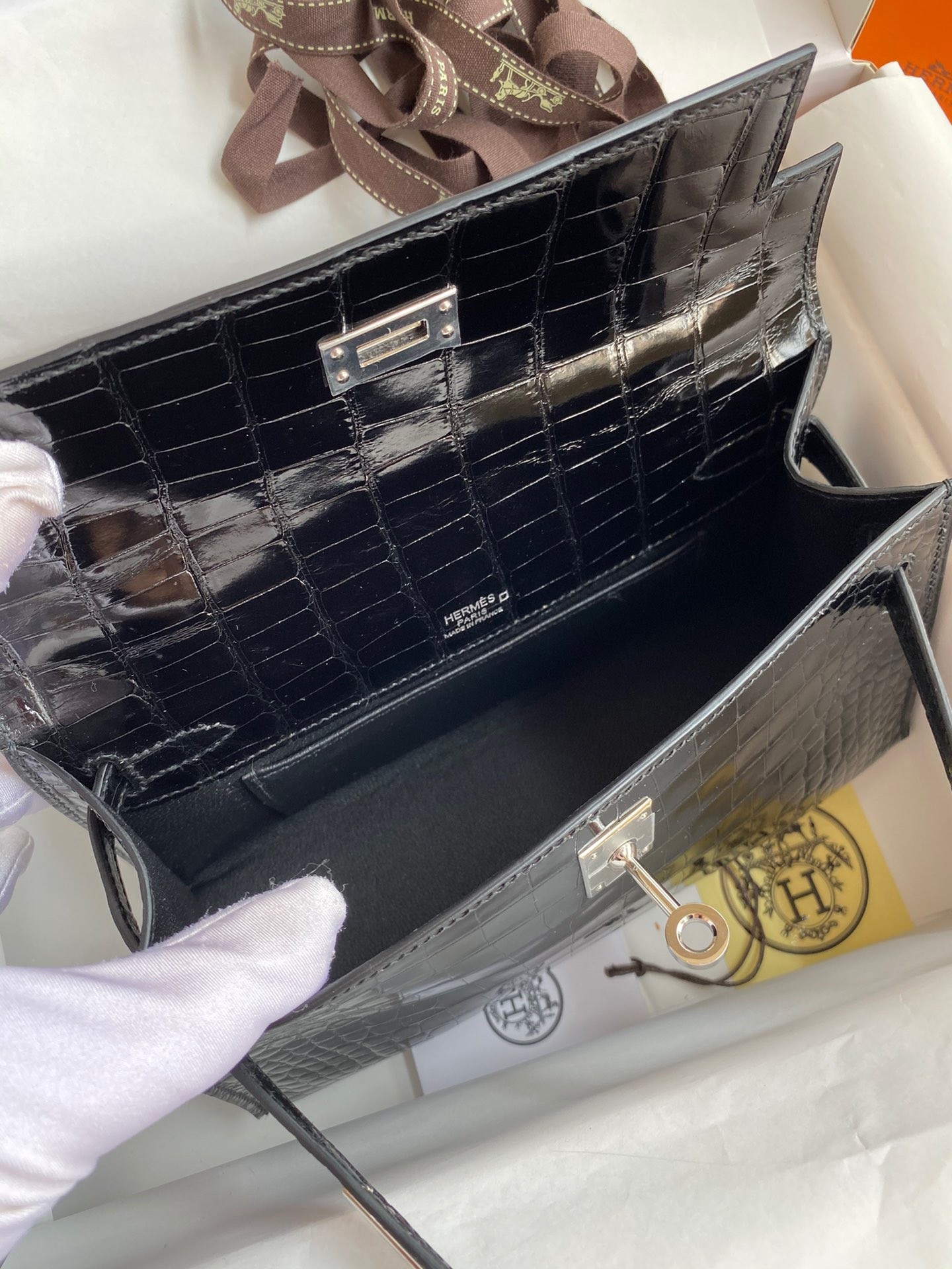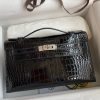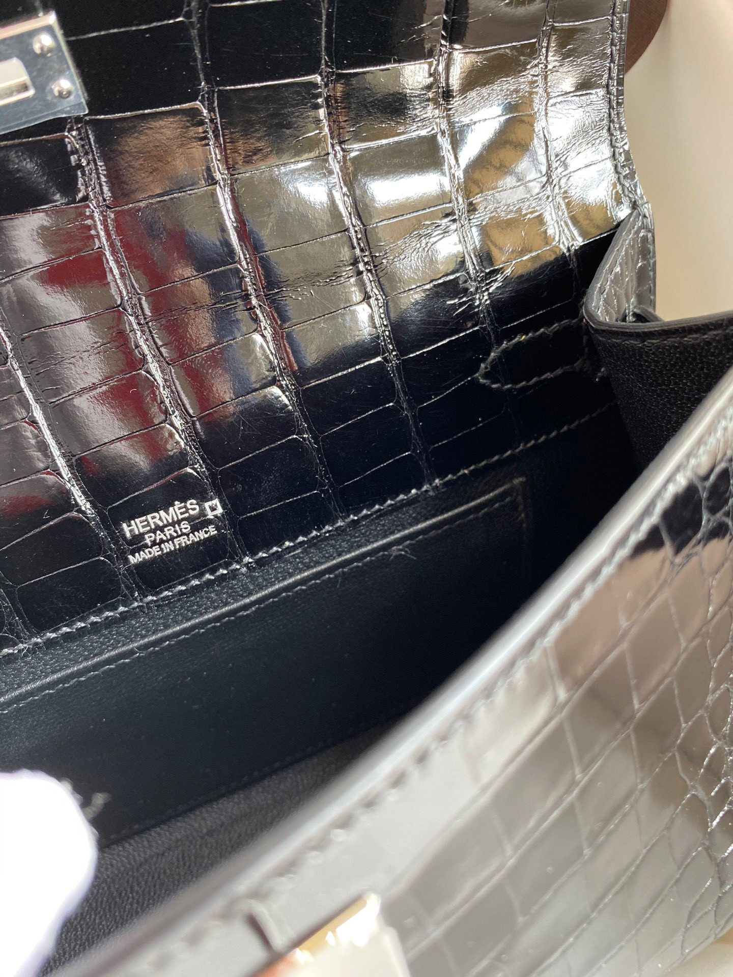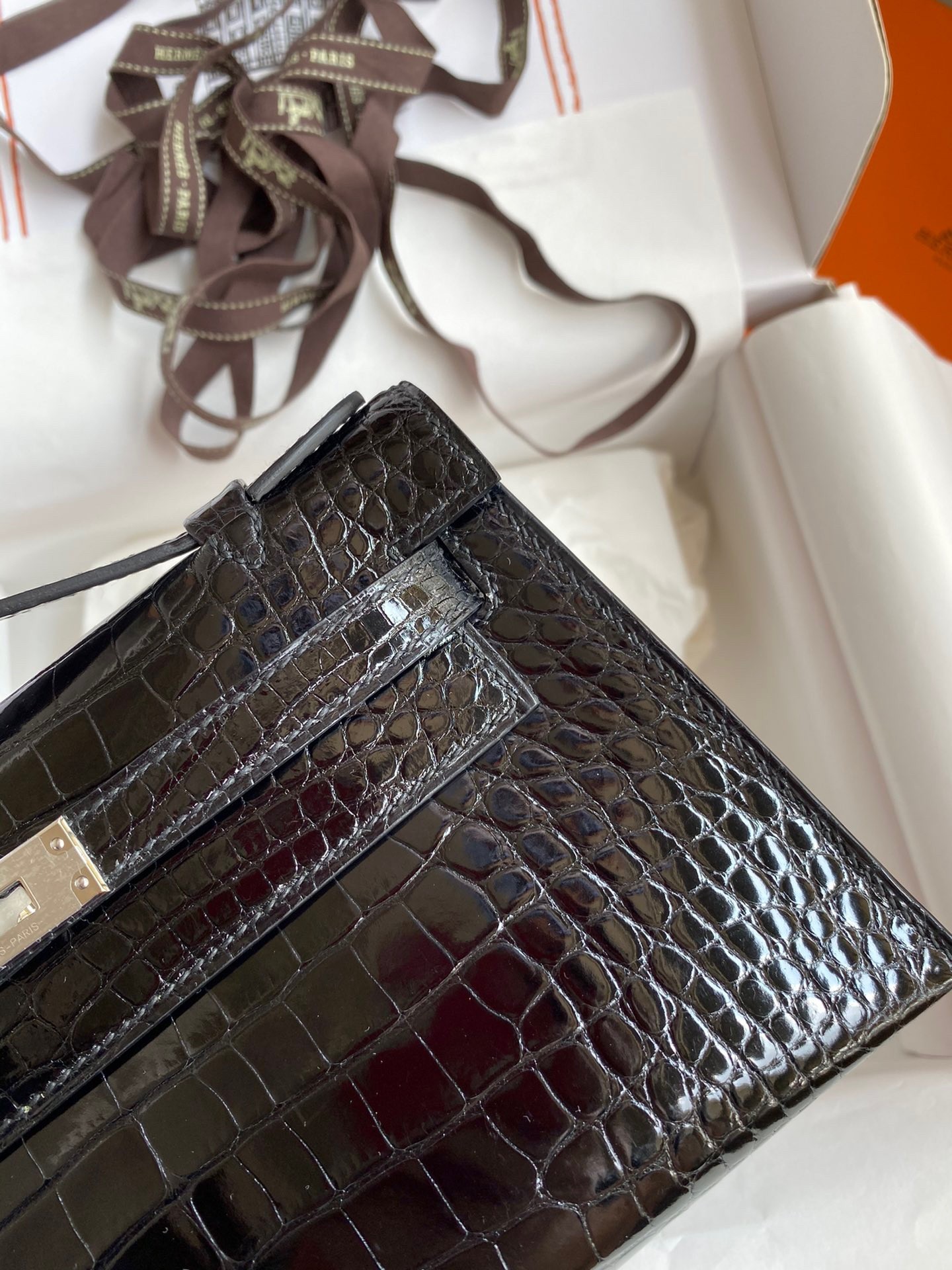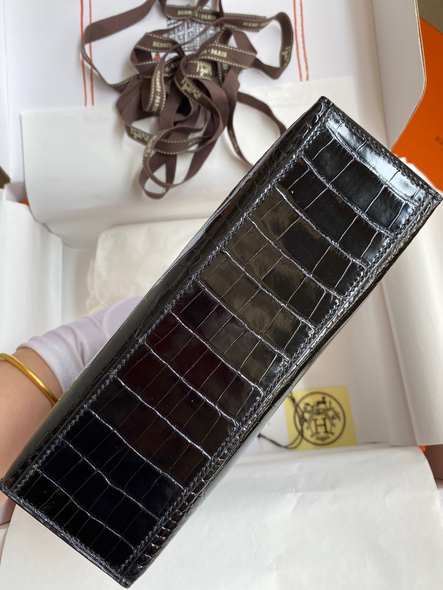 Hermes Kelly Pochette Sac à main en cuir d'alligator noir brillant