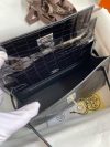 Soyez le premier à commenter "Hermes Kelly Pochette Handmade Bag In Black Shiny Alligator Leather"