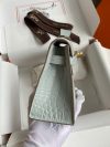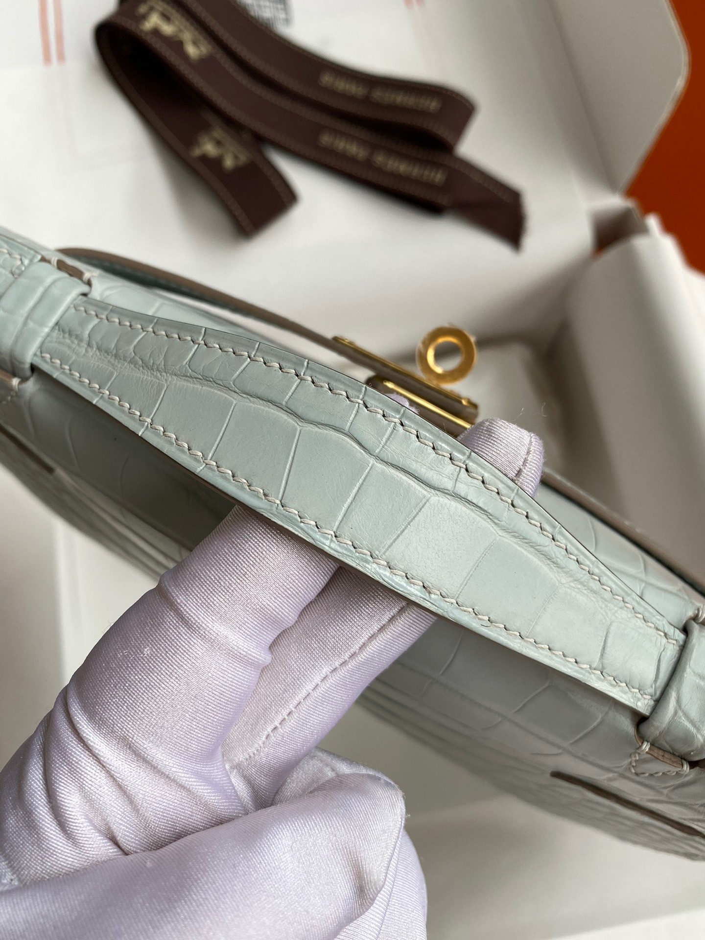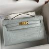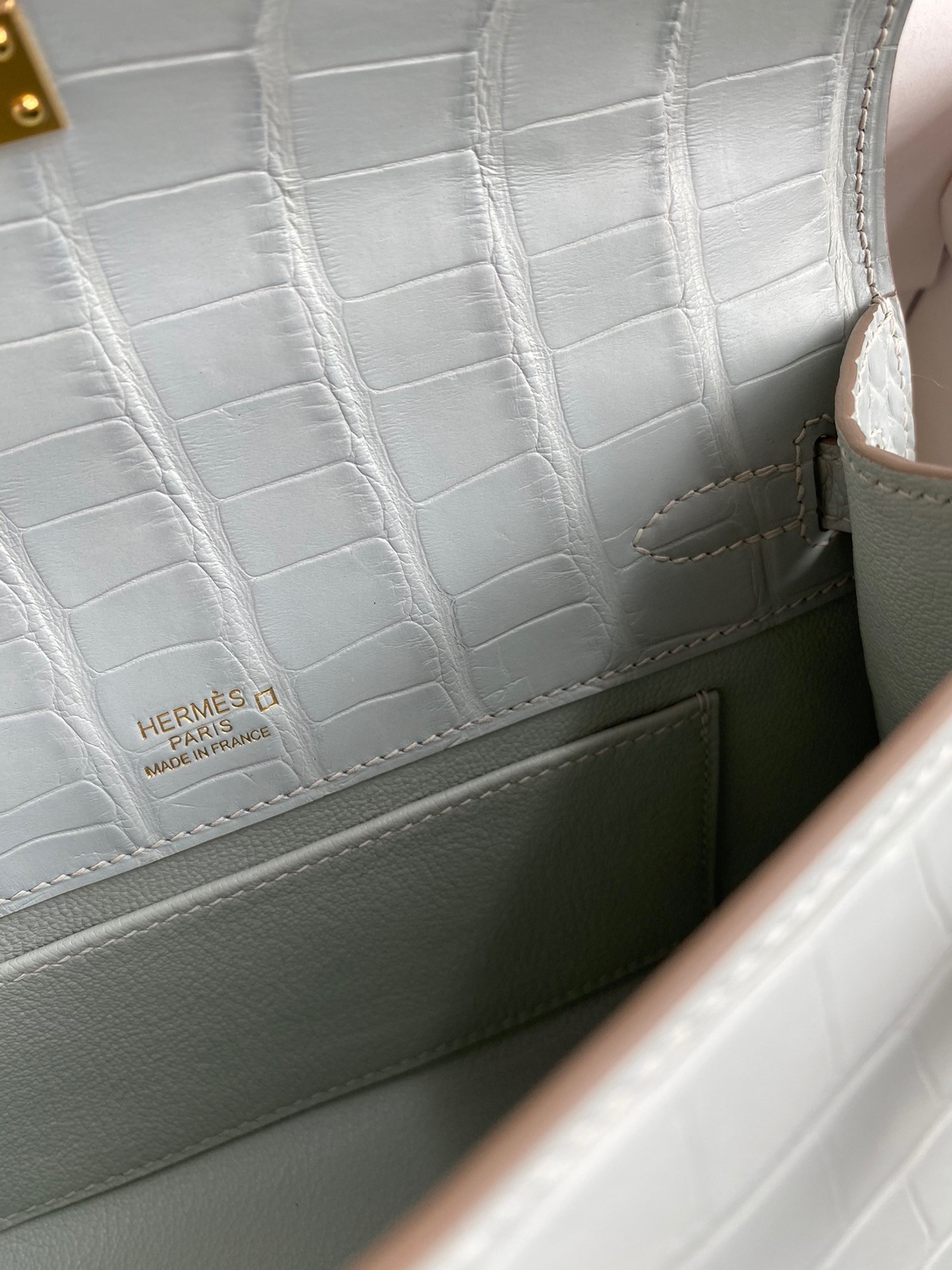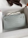 Hermes Kelly Pochette Handmade Bag In Pearl Grey Matte Alligator Leather