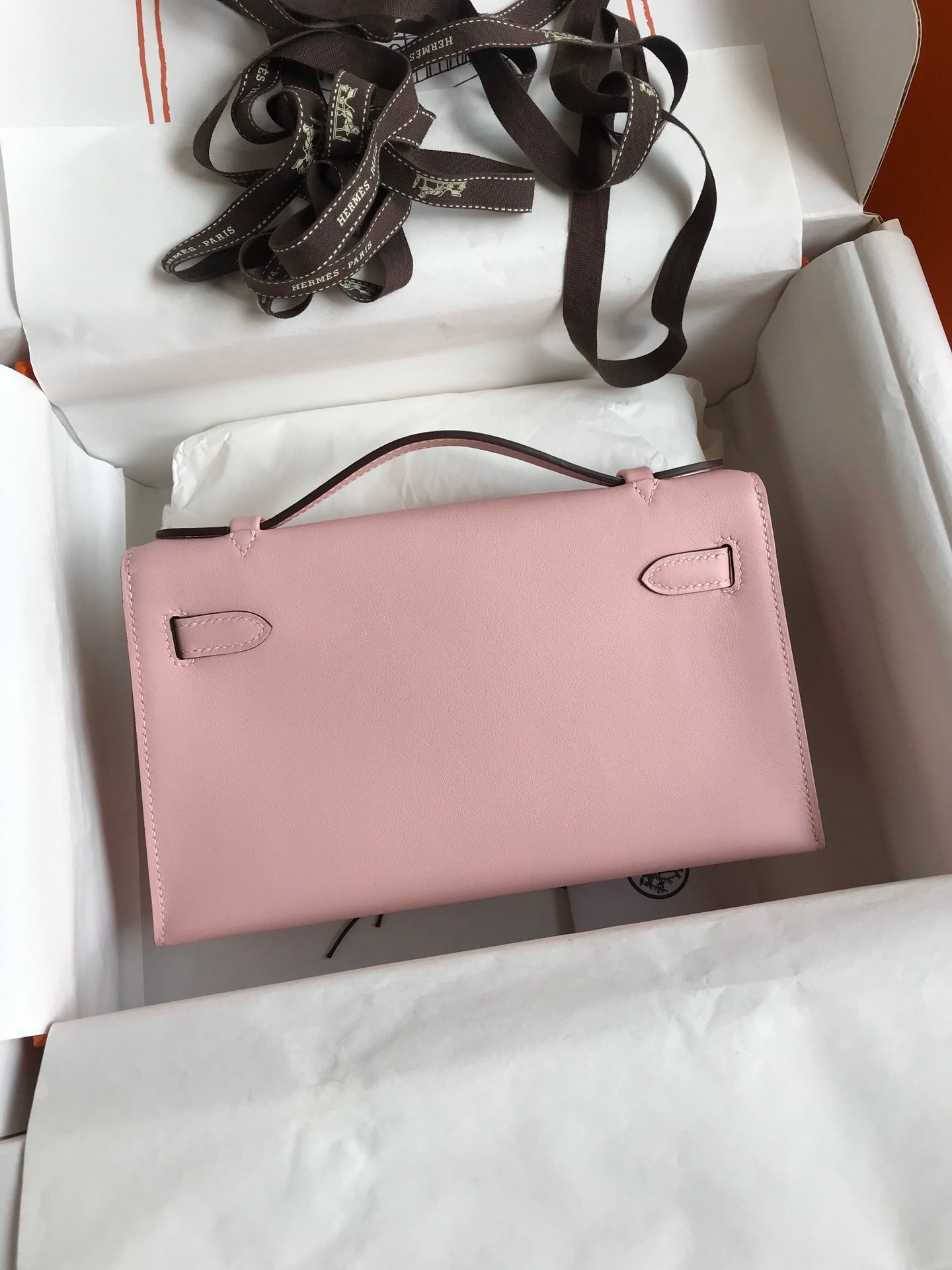 Hermes Kelly Pochette Handmade Bag In Rose Sakura Swift Calfskin