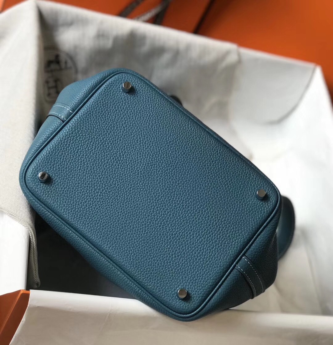 Sac Hermes Picotin Lock 18 en cuir bleu Jean Clemence