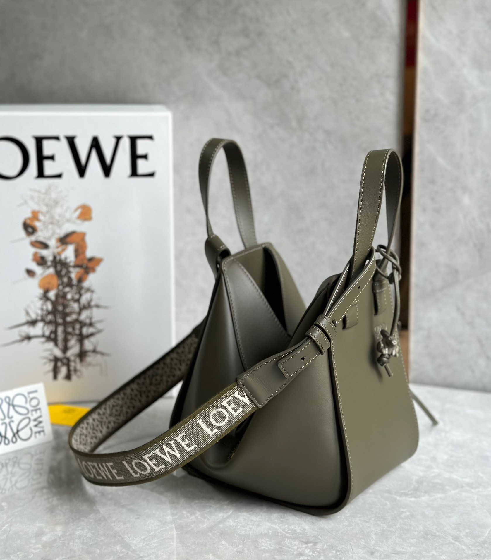 Soyez le premier à commenter "Loewe Compact Hammock Bag in Khaki Green Satin Calfskin"