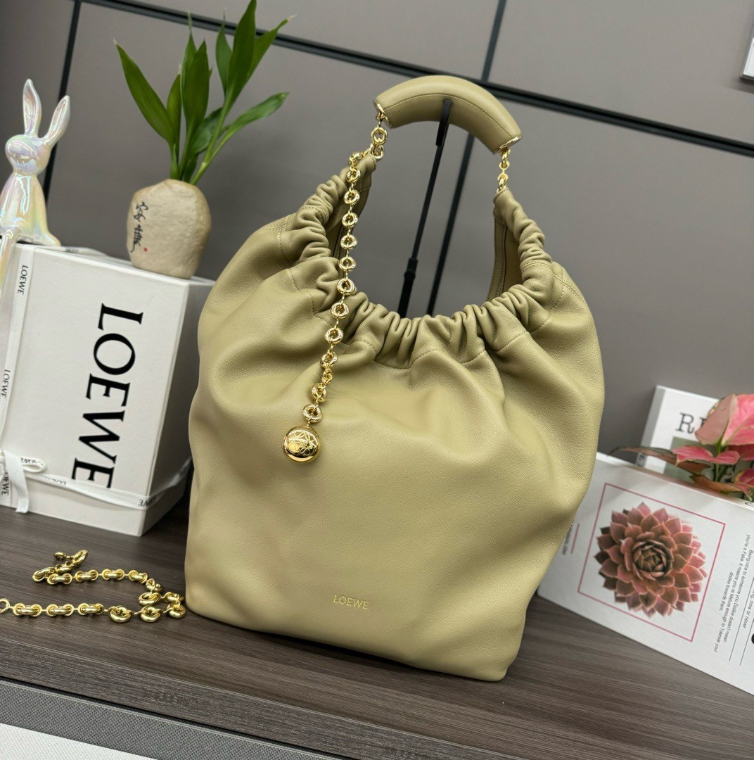 Loewe Medium Squeeze Bag in Clay Green Nappa Lambskin