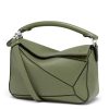 Mini sac Loewe Puzzle en cuir de veau vert avocat