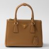 Petit sac Prada Galleria en cuir Saffiano caramel