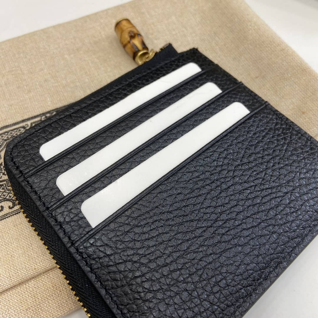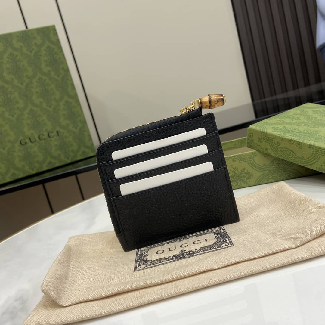 Replica Gucci GG Logo Zip Leather Card Case With Bamboo 739497