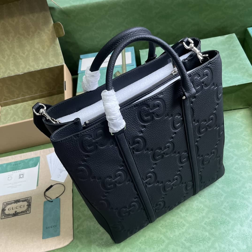 Replica Gucci Jumbo GG Medium Tote Bag In Black Leather 760233