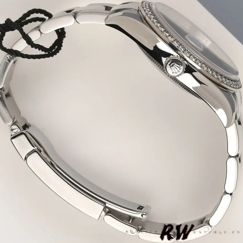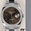 Rolex Datejust 116244 Bronze Floral Arabic Diamond Dial 36mm Unisex Replica Watch.The 36mm diameter solid three-body case, bracelet, gently curved lugs, and white gold diamond bezel, are polished/brushed. The dial is Bronze with fine floral design and Arabic hour markers and a Rolex crown at 12 o’clock. There is an instantaneous date aperture window at 3 o’clock with a magnified cyclops lens. Scratch-Resistant Sapphire Crystal, Screw-Down Crown with Twinlock Double Waterproofness System.