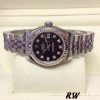 Rolex Datejust 179174 Black Diamond Dial Fluted Bezel 26MM Lady Replica Watch, 26mm Stainless steel oyster case in diameter. White gold fluted bezel. Scratch resistant sapphire crystal with cyclops magnifier.Black Dial with Diamond Hour Markers. Date calendar at 3 o’clock aperture. Stainless steel jubilee bracelet with a hidden clasp.
