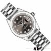 Rolex Datejust 279166 Dark Grey Diamond Dial Domed Bezel 28mm Lady Replica Watch, Features a 28MM polished platinum case, Polished platinum domed fixed bezel. Scratch-resistant sapphire crystal with Cyclops magnifying glass.Dark Grey dial with diamond hour markers.Date calendar at 3 o’clock aperture. Olished platinum President Bracelet with Concealed folding Crownclasp deployment buckle.