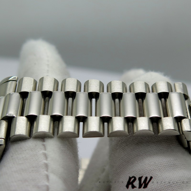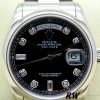 Rolex 118206 Day Date Platinum Black Diamond Dial 36mm Unisex Replica Watch.36mm Polished platinum domed bezel case.Black dial, diamond and diamond baguette hour markers, day display at 12 o’clock, date display at 3 o’clock, President bracelet and folded clasp, sapphire crystal glass.