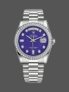 Rolex Day Date 118346 Lapis Lazuli Blue Dial 36mm Unisex Replica Watch. 36mm Polished platinum case featuring Lapis Lazuli Blue Dial with Diamonds.The dial is surrounded by set round brilliant cut diamond bezel,Day of the week window displayed at the 12 o’clock position.Date window displayed at the 3 o’clock position with a cyclops magnifying lens.The elegantly designed Platinum with Concealed Folding Crownclasp will look great on your wrist.