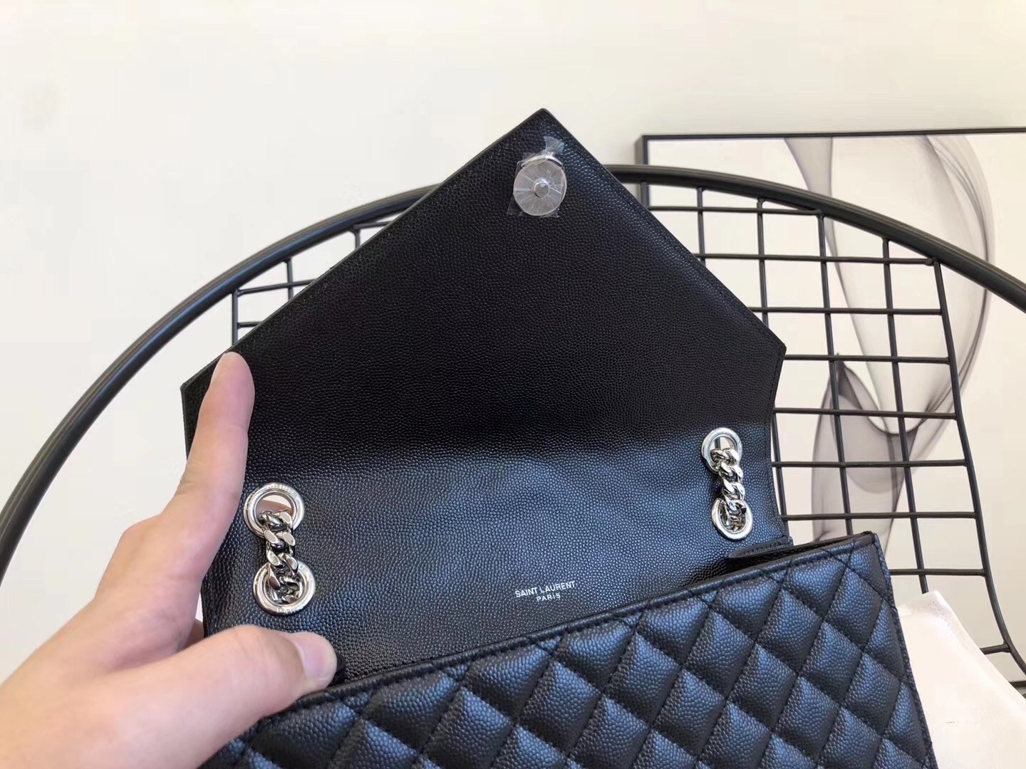 Soyez le premier à commenter "Saint Laurent Medium Envelope Bag In Noir Grained Leather"
