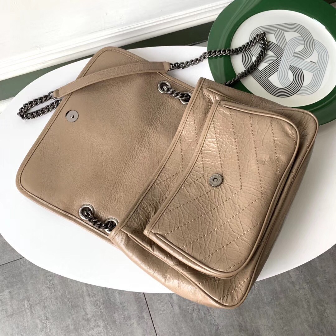 Saint Laurent Medium Niki Bag In Taupe Crinkled Leather
