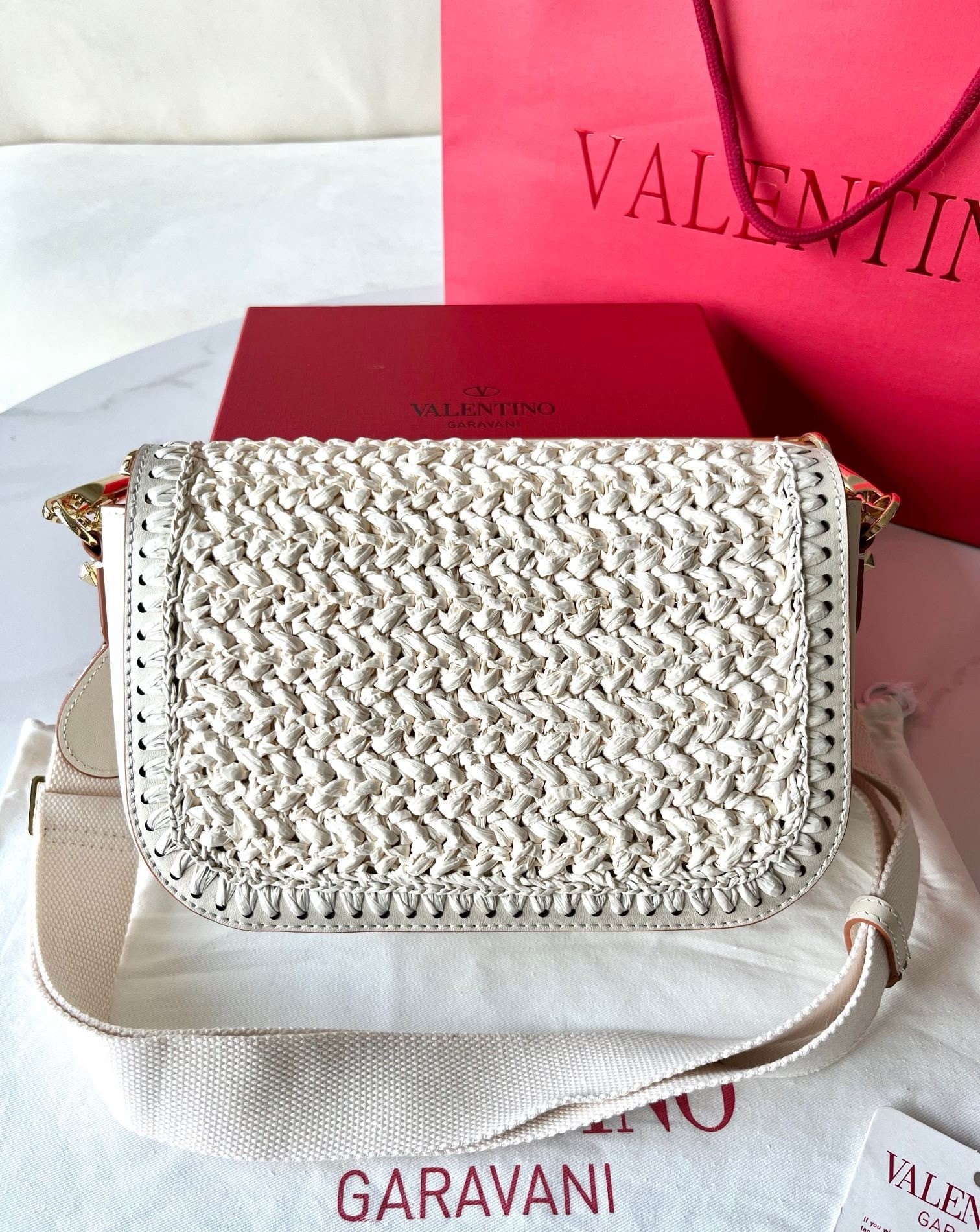 Sac à bandoulière Valentino Alltime en raphia blanc