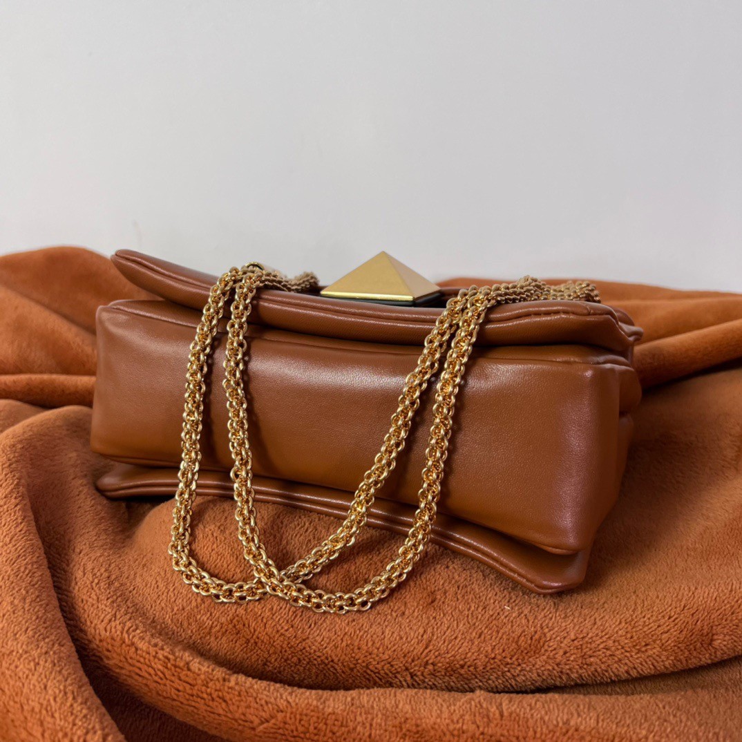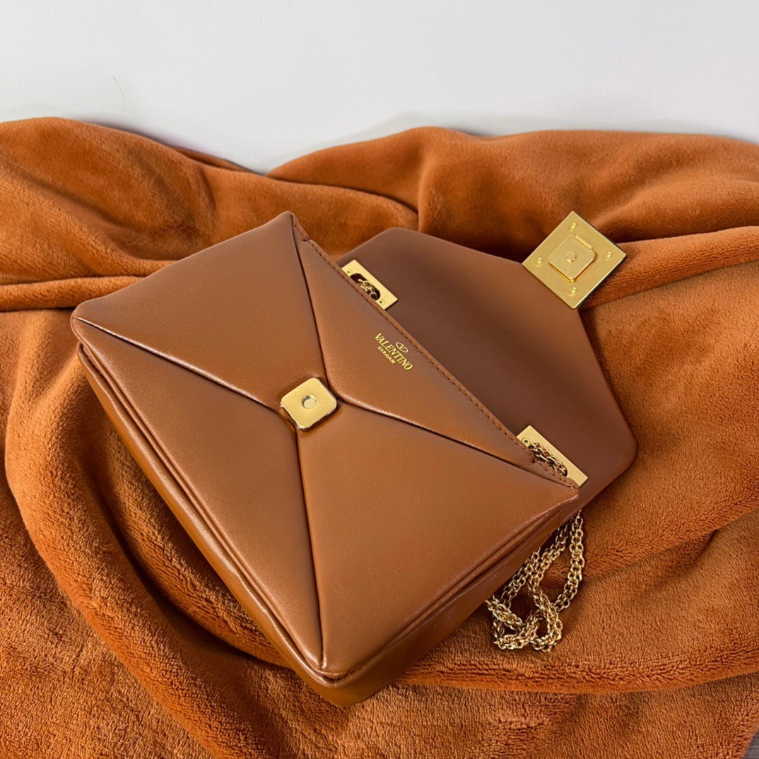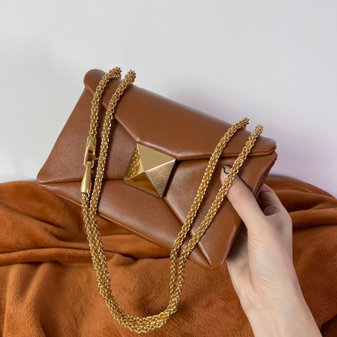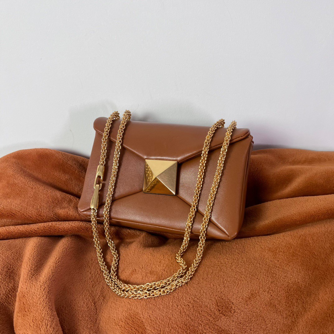 Valentino One Stud Chain Bag In Brown Nappa Leather