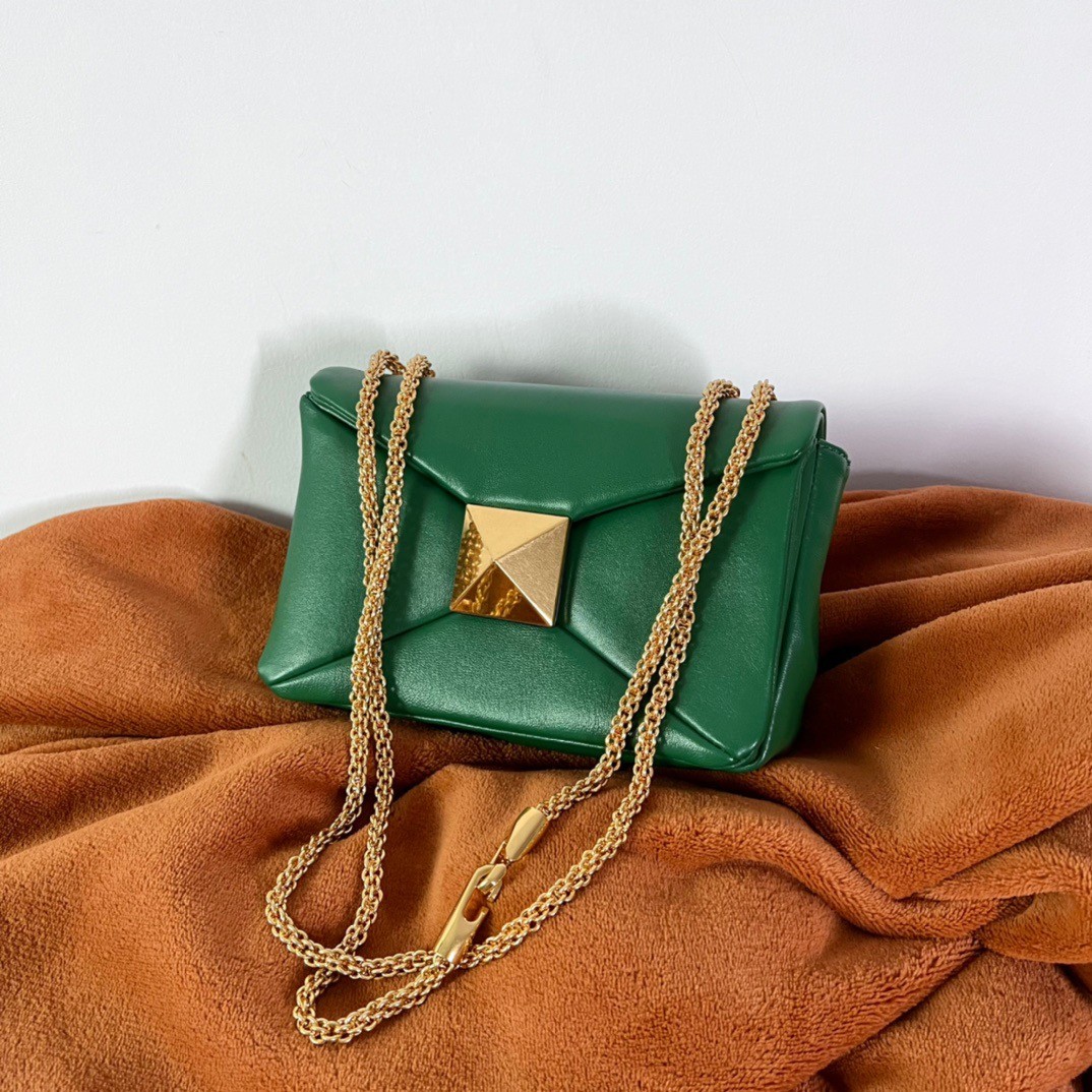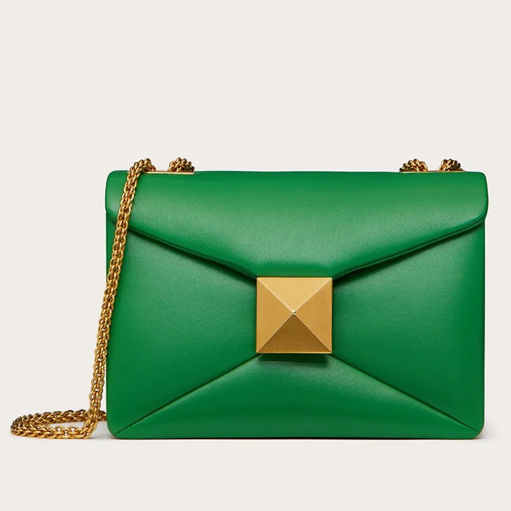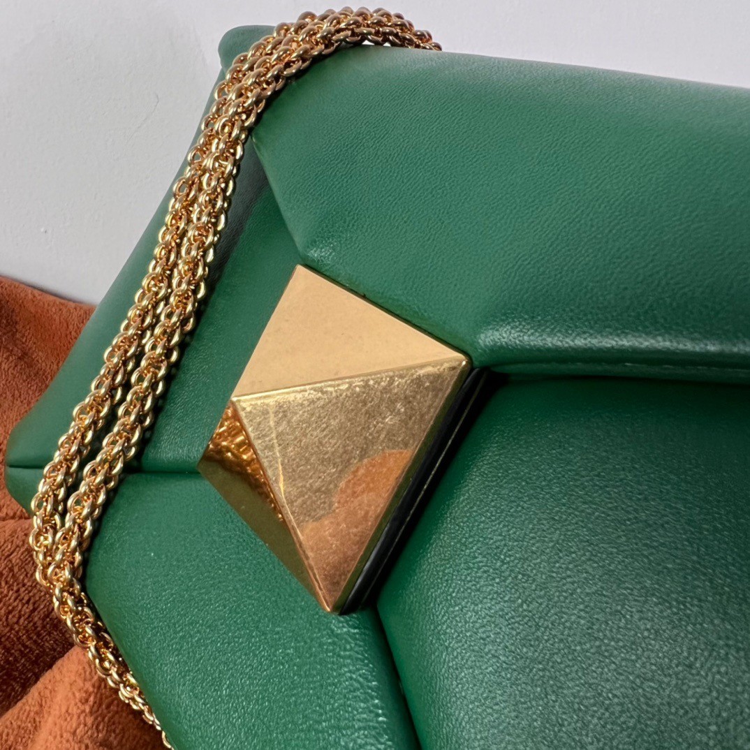Valentino One Stud Chain Bag In Green Nappa Leather