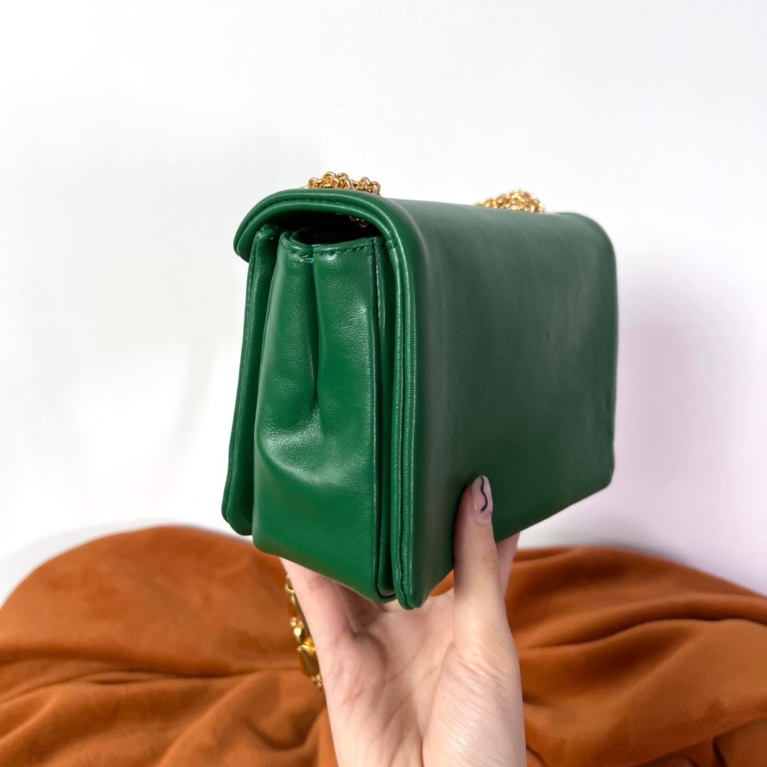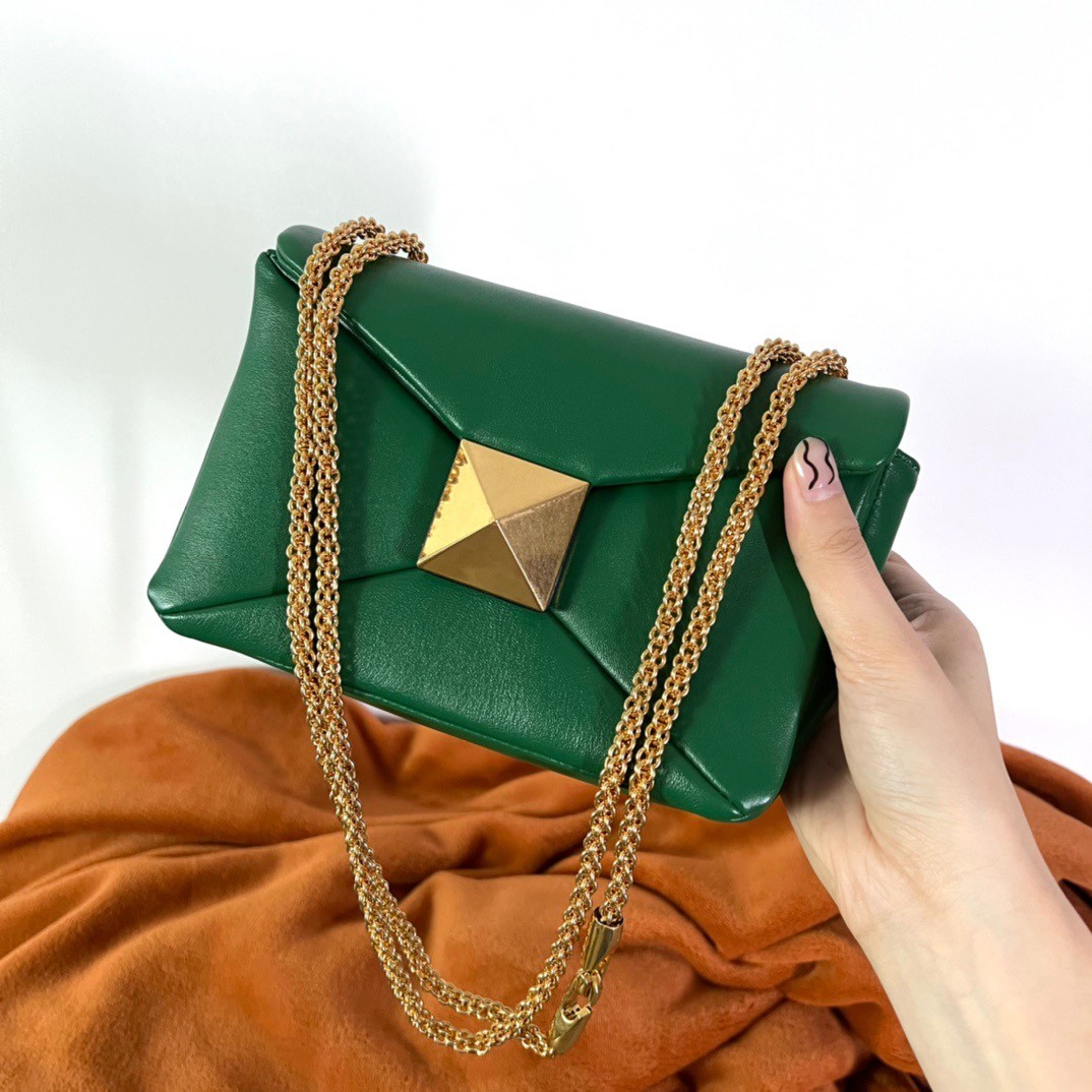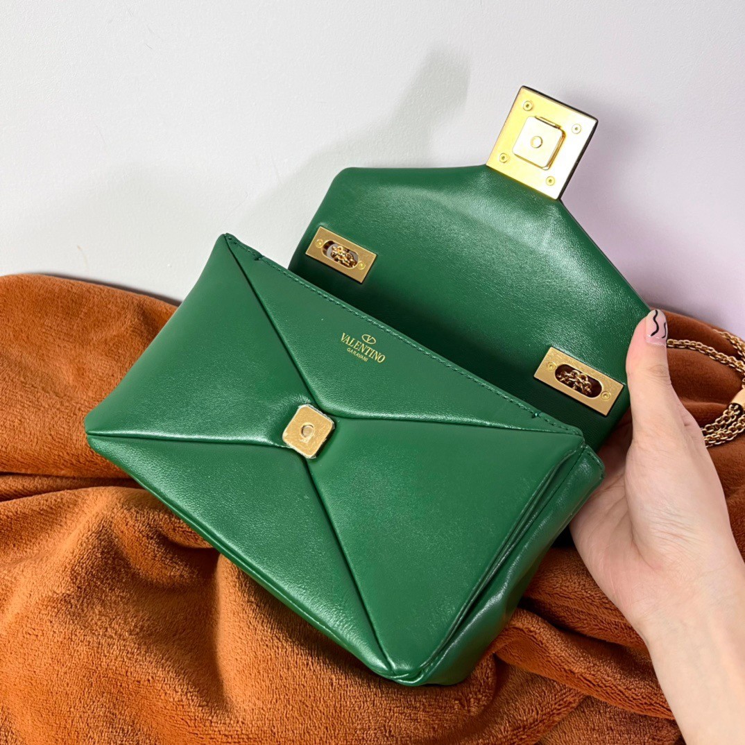 Valentino One Stud Chain Bag In Green Nappa Leather