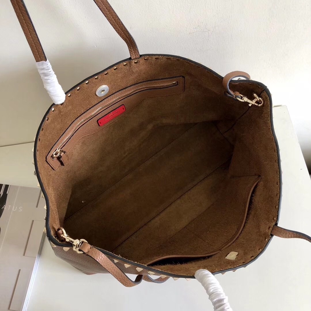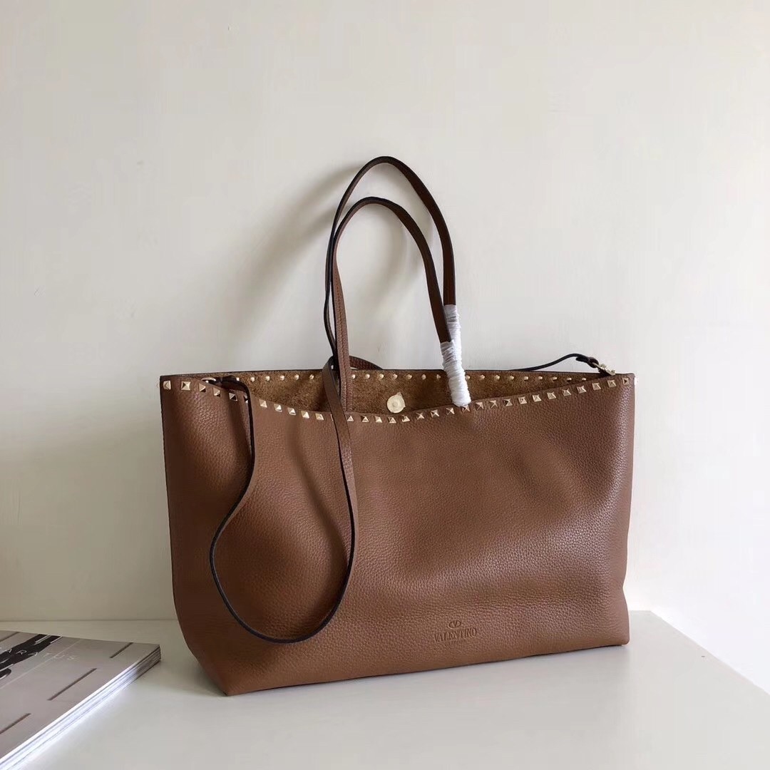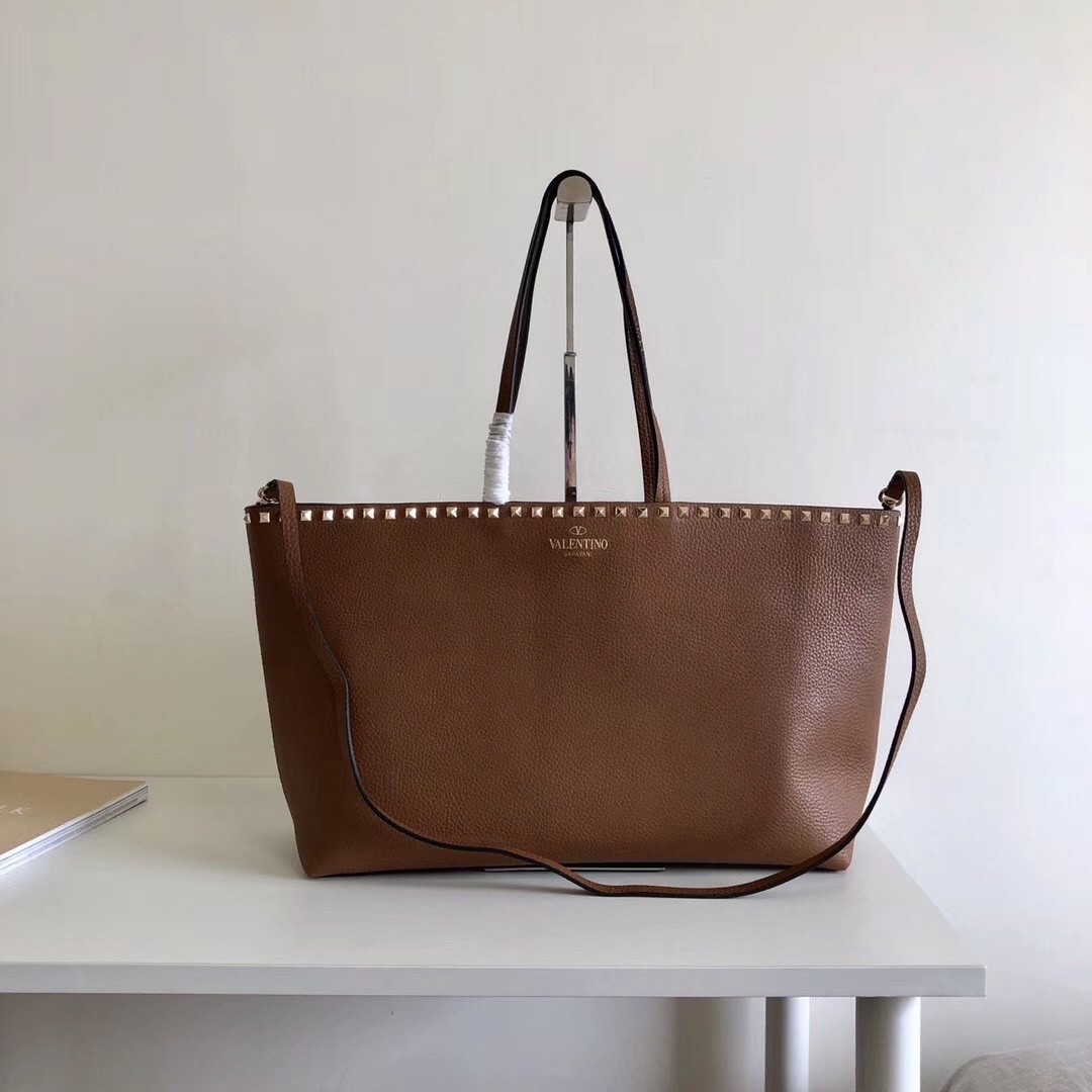 Valentino Rockstud Large Shopping Bag In Brown Leather