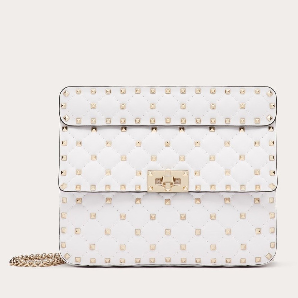 Valentino Rockstud Spike Medium Bag In White Nappa Leather