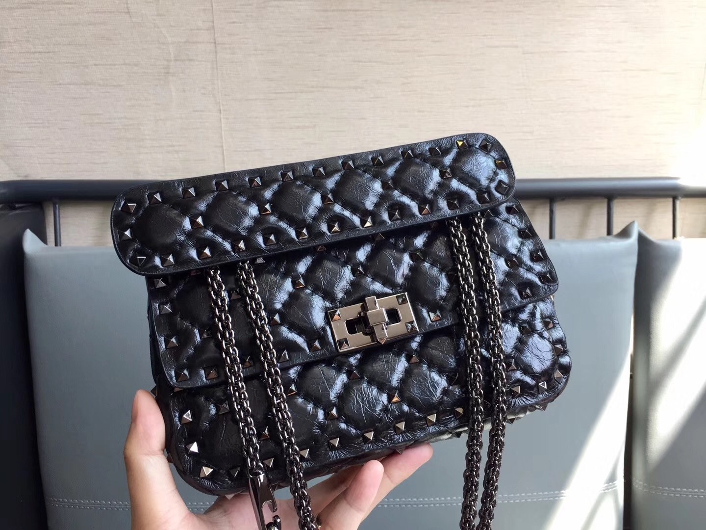 Soyez le premier à commenter "Valentino Rockstud Spike Small All Black Bag"