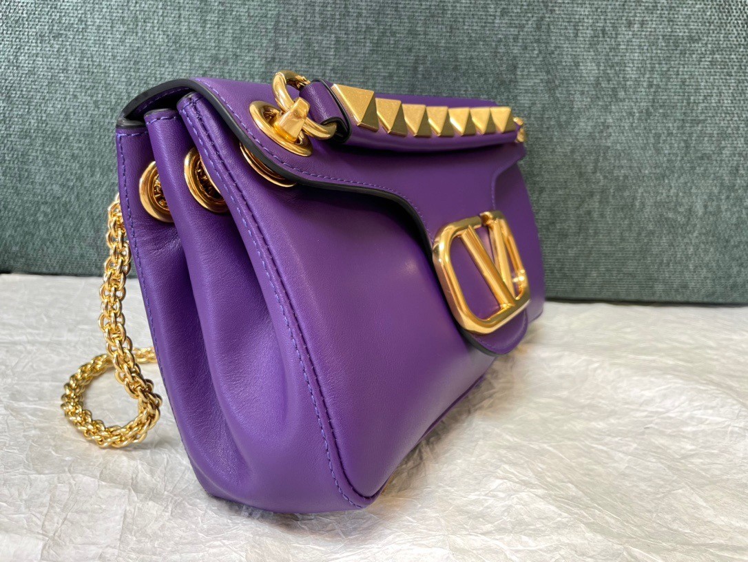 Soyez le premier à commenter "Valentino Stud Sign Shoulder Bag In Purple Nappa Leather"